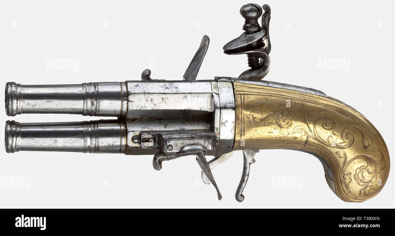 A Flintlock Turn Barrel Pocket Pistol Devillers In Liege Circa 1800 Two Stage Barrels Octagonal Breech Section Then Round With Lugs And With Smooth Bores In 7 Mm Calibre Frizzens On The Sides And
